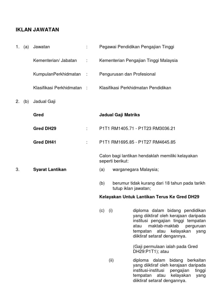 Pegawai pendidikan pengajian tinggi gred dh29/dh41/dh47.
